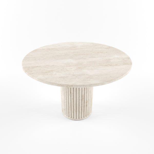 La table à manger Agora se distingue par sa silhouette arrondie et son plateau massif en travertin. Façonnée artisanalement au Maroc, elle allie douceur visuelle et solidité naturelle. Son pied central cannelé ajoute une touche architecturale raffinée à votre salle à manger. Chaque veinure raconte l’histoire unique de la pierre, rendant chaque table totalement singulière. Elle est idéale pour créer une atmosphère conviviale et luxueuse, entre tradition artisanale et design moderne.