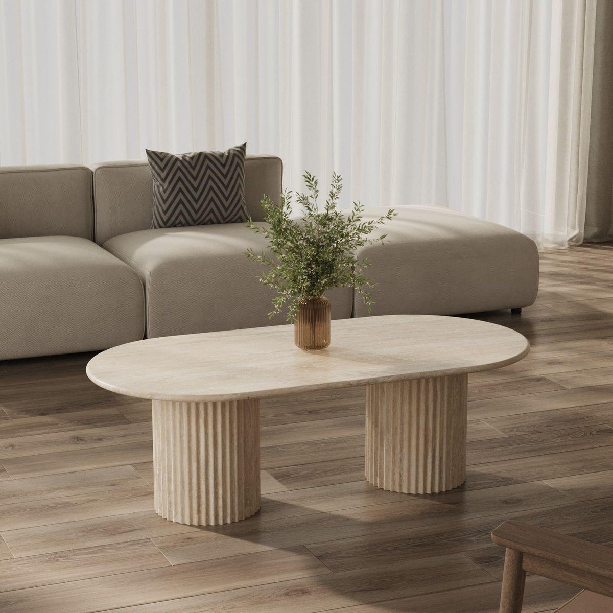 La table basse Roma allie douceur des formes et authenticité artisanale. Façonnée à la main au Maroc, elle est sculptée dans du travertin naturel, révélant de magnifiques nuances et textures uniques. Sa silhouette ovale apporte une touche harmonieuse et aérienne à votre espace de vie. Le piètement cannelé, emblématique du design Soramif, confère un caractère architectural fort et intemporel. Véritable œuvre d’art minérale, la table Roma incarne le mariage parfait entre la solidité de la pierre et la finesse du savoir-faire marocain.